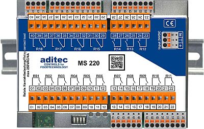 - Mit 18 Relaisausgängen (erweiterbar auf 72 über Zusatzmodule MR6), 12 Digitaleingängen (erweiterbar auf 48 über Zusatzmodule MD12) sowie diversen analogen Ein- und Ausgängen (erweiterbar über diverse Zusatzmodule) und 48 Prozessen.